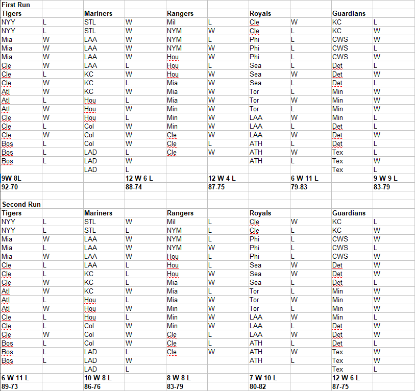 Despite all that, it is fun to make predictions. So, in the spirit of that fun, and on the off-chance that I won the lottery in picking the right tidbits that will be put together to predict the October that lies ahead, here is one of the possible 2,048 ways that the MLB post-season could go. I will also provide a few a nuggets of information for each outcome as I see it. I want to directly mention that I am aiming to be objective in these predictions, despite my Guardians fandom. That said, we’re going to rip the band-aid right off and start with my favorite squad of 26.